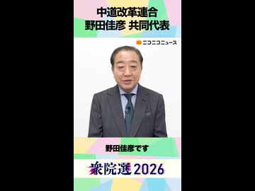【衆院選2026】中道改革連合 野田佳彦 共同代表から「国民へのメッセージ」ネット第一声