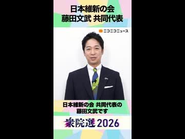 【衆院選2026】日本維新の会 藤田文武 共同代表から「国民へのメッセージ」ネット第一声
